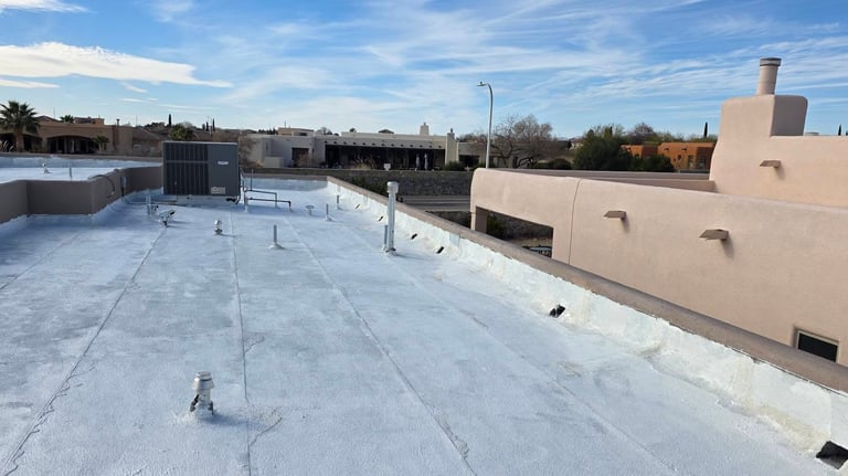 Reflective coatings reduce heat absorption by reflecting sunlight, keeping your building cooler and lowering air conditioning costs—perfect for hot climates like Las Cruces.